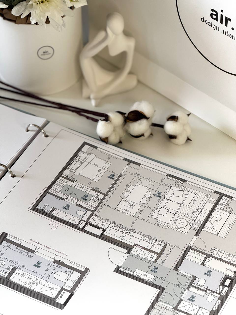 ✓ Excel-таблица (материалы, мебель, стоимость) ✓ сборка финального альбома рабочей документации ✓ передача альбома в печатном виде и PDF-формате